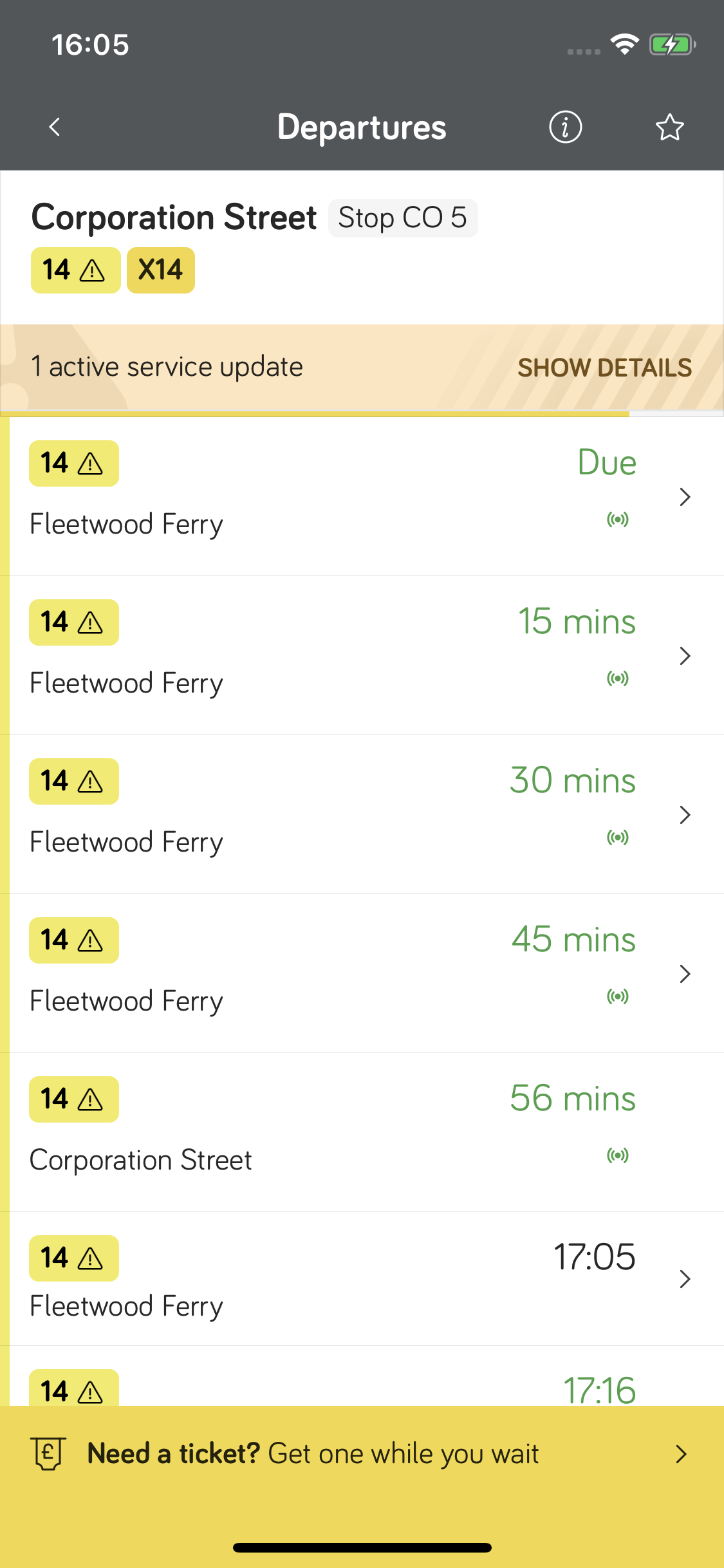 Live departures